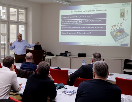 Schulung mit Übungen zum ThemaDie Strom-Netzqualität oder auch „Power Quality“ (PQ) ist ein wichtiger Teil der Informationen über die Netzversorgung. Leider wurde sie in den letzten Jahren sehr stiefmüterlich behandelt. Teils durch die Verschiebung von notwendigen Interessen wie der Energiemessung und zum anderen Teil durch den Verlust von Know-how.